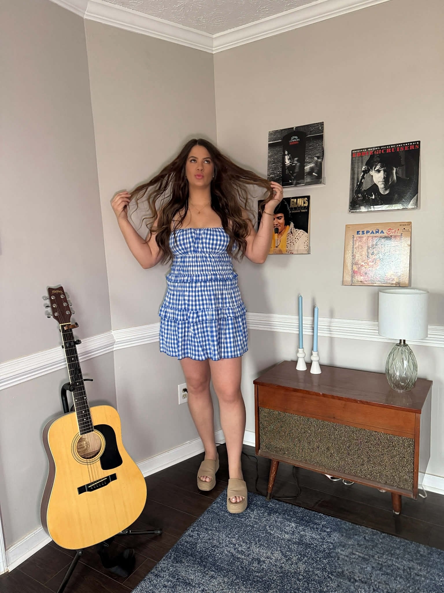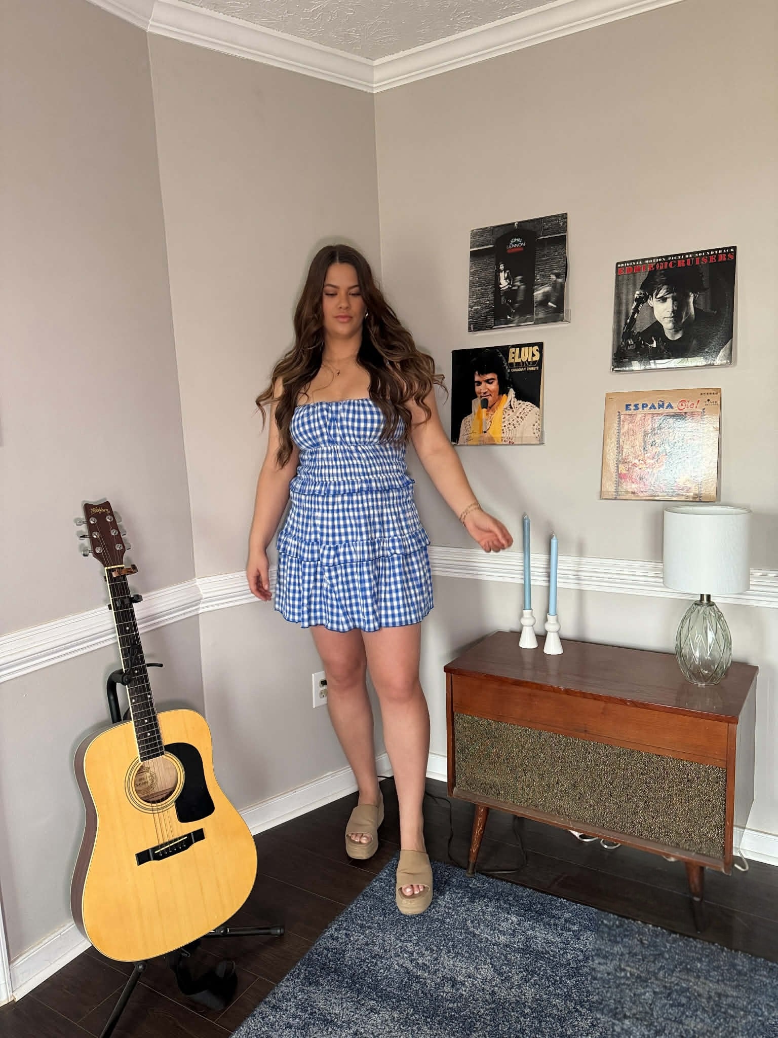 ADJUSTBALE SPAGHETTI STRAPS, STRAIGHT NECKLINE & RUFFLE DETAIL