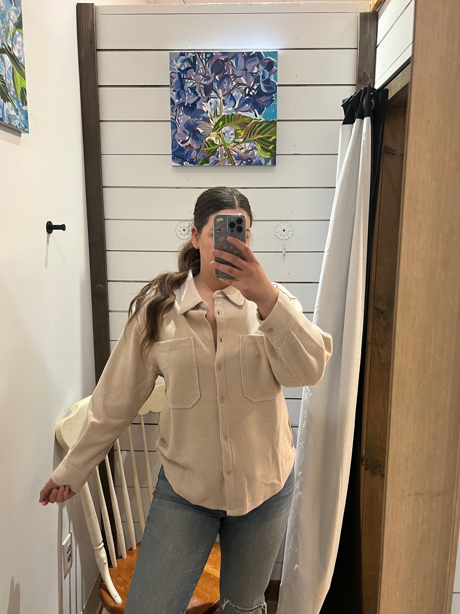 Oversized Cozy Button Down Shacket Jacket - Big Patch Pockets - Dropped Shoulder - Round Hem -Long Sleeve